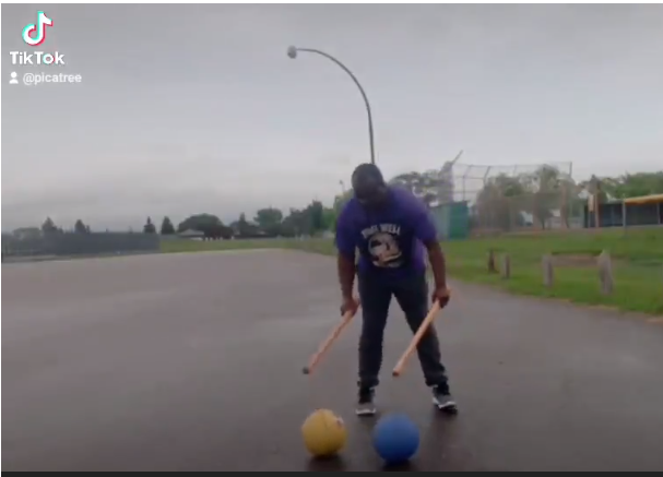 1. Dribbling a  still ball. Start off with the right hand dribbling the left  ball with the  right stick. Once the ball is bouncing then switch to the left hand and dribble with the left hand.  Continue with the right ball with the right stick.
